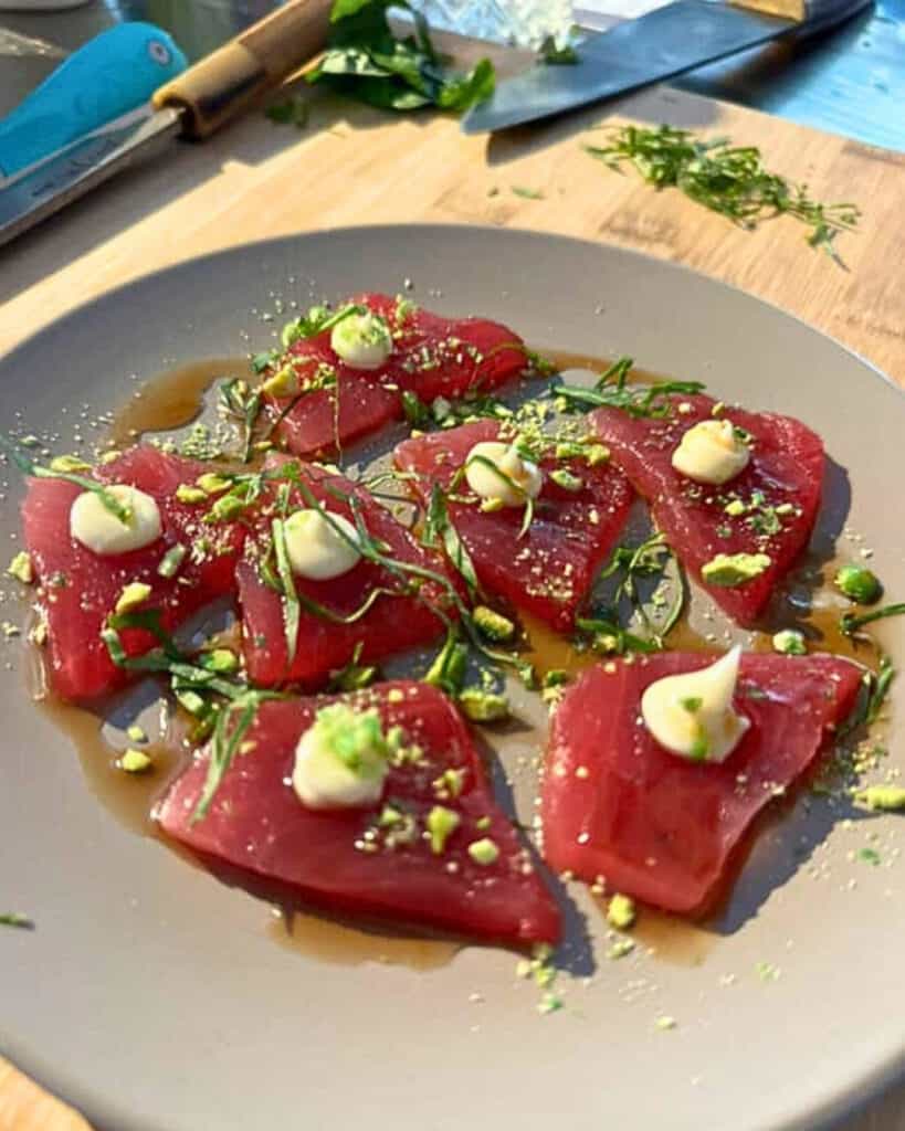 - Prepare the fish: Using a very sharp knife, slice the fish into small, thin pieces and arrange them on a chilled platter.